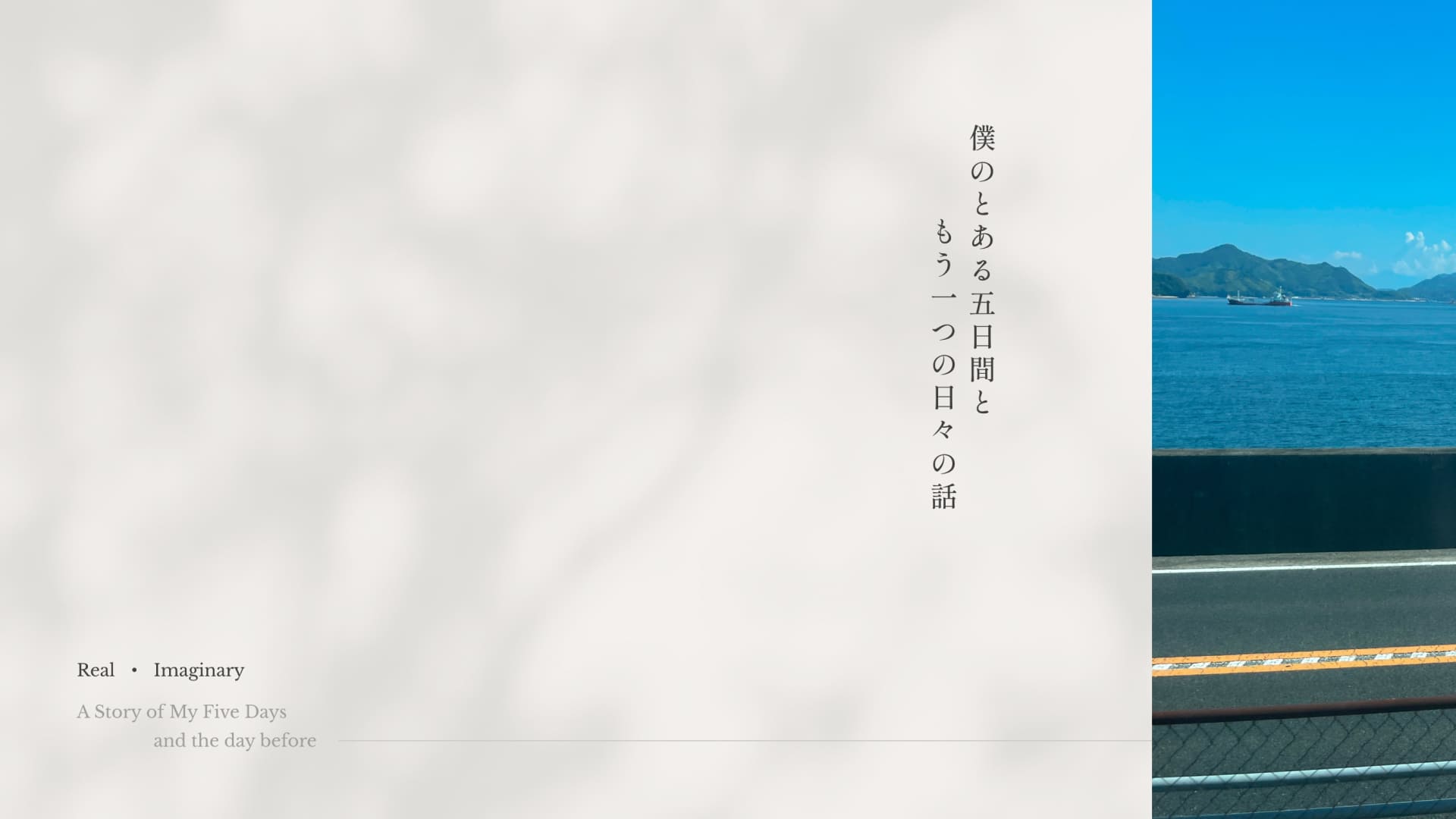 加えてリアルの自分の五日間と想像での五日間を織り交ぜることで、課題曲の複数人による重なりの箇所を、現実と想像の二つの自分の視点の重なりで表現した。