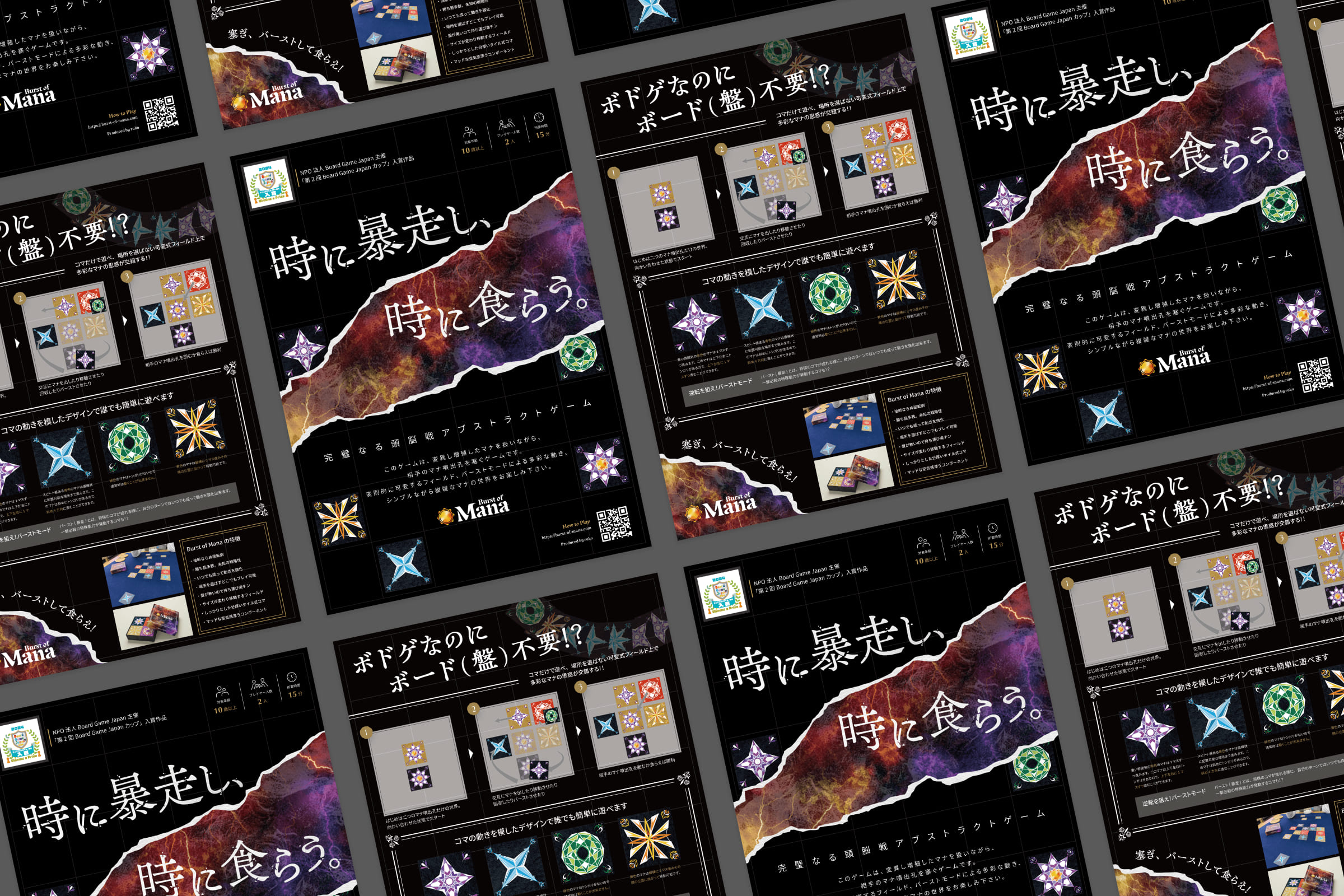 Mana(バーストオブマナ)というボードゲームのフライヤーデザインを行いました。