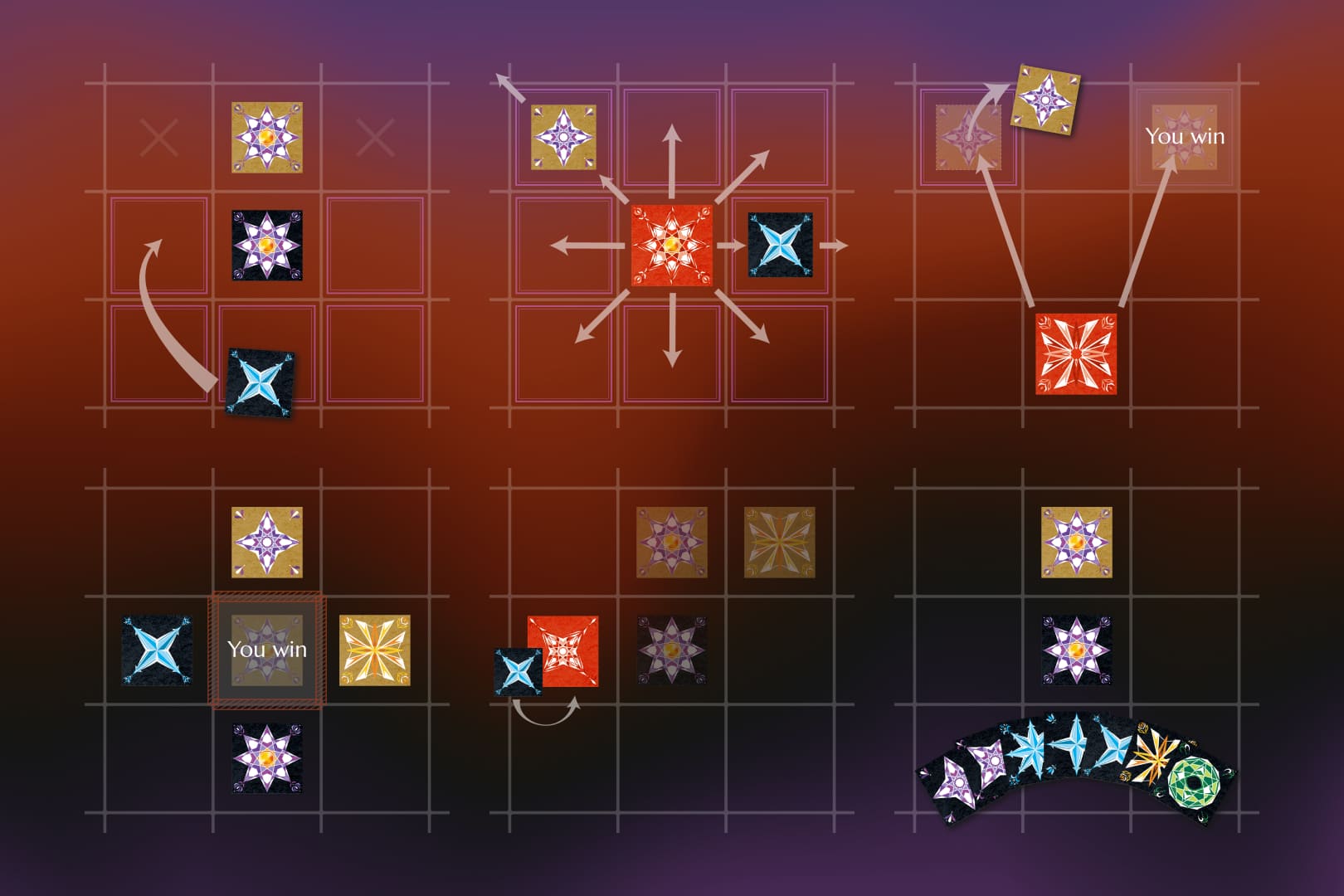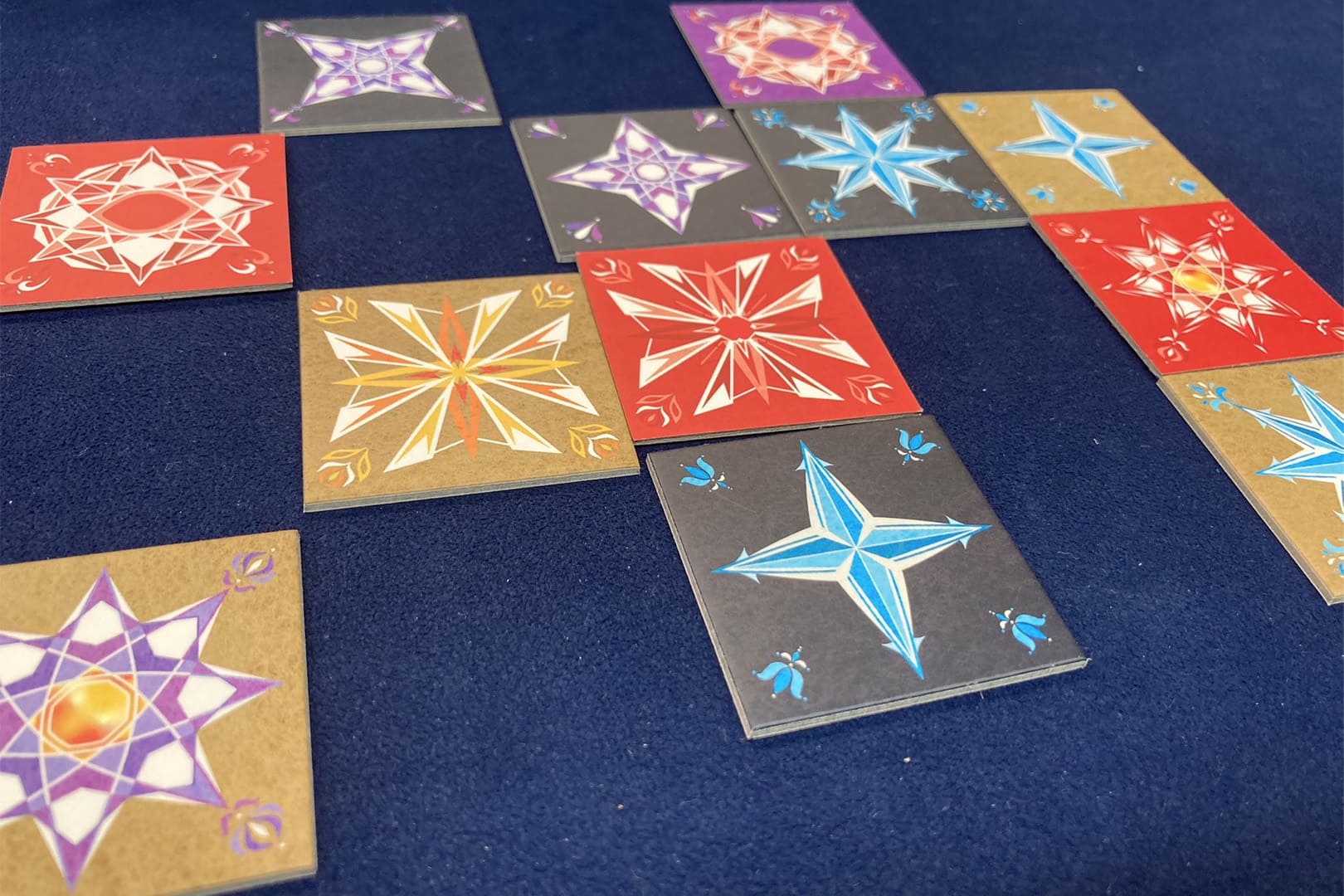 ボードゲームの世界観に関して様々な情報のヒアリングを行った上で、マナの背景やゲームルールなどをもとにビジュアル方向性を定め、らしさのあるデザインを意識し作成いたしました。