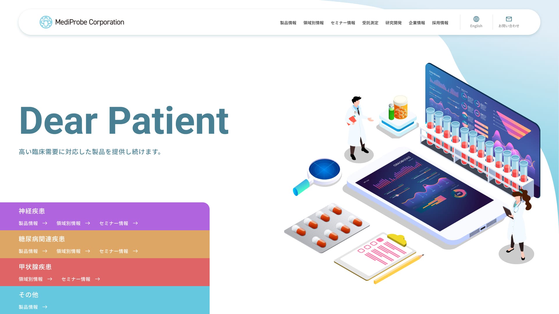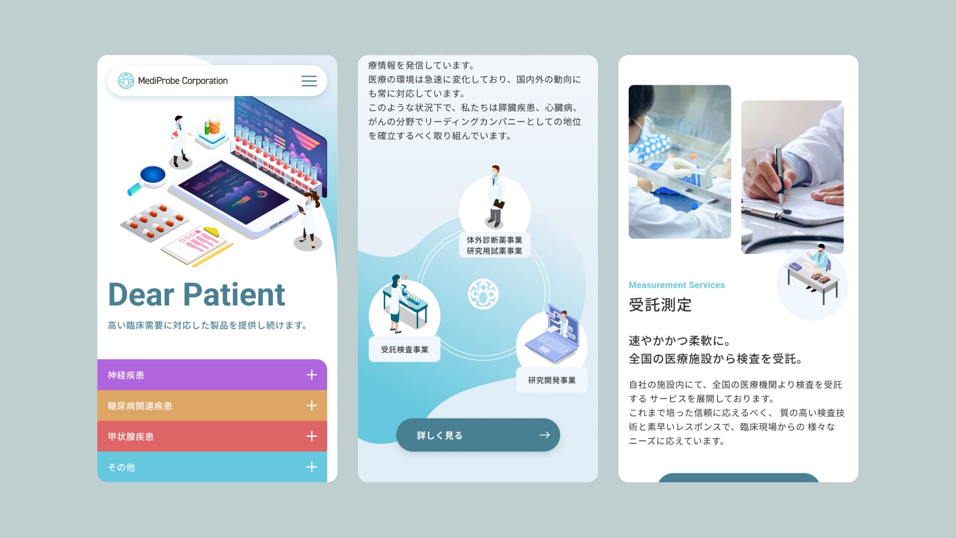 自主制作として、医療従事者をターゲットとした難病に対する臨床検査薬の企業のWebデザインを制作しました。