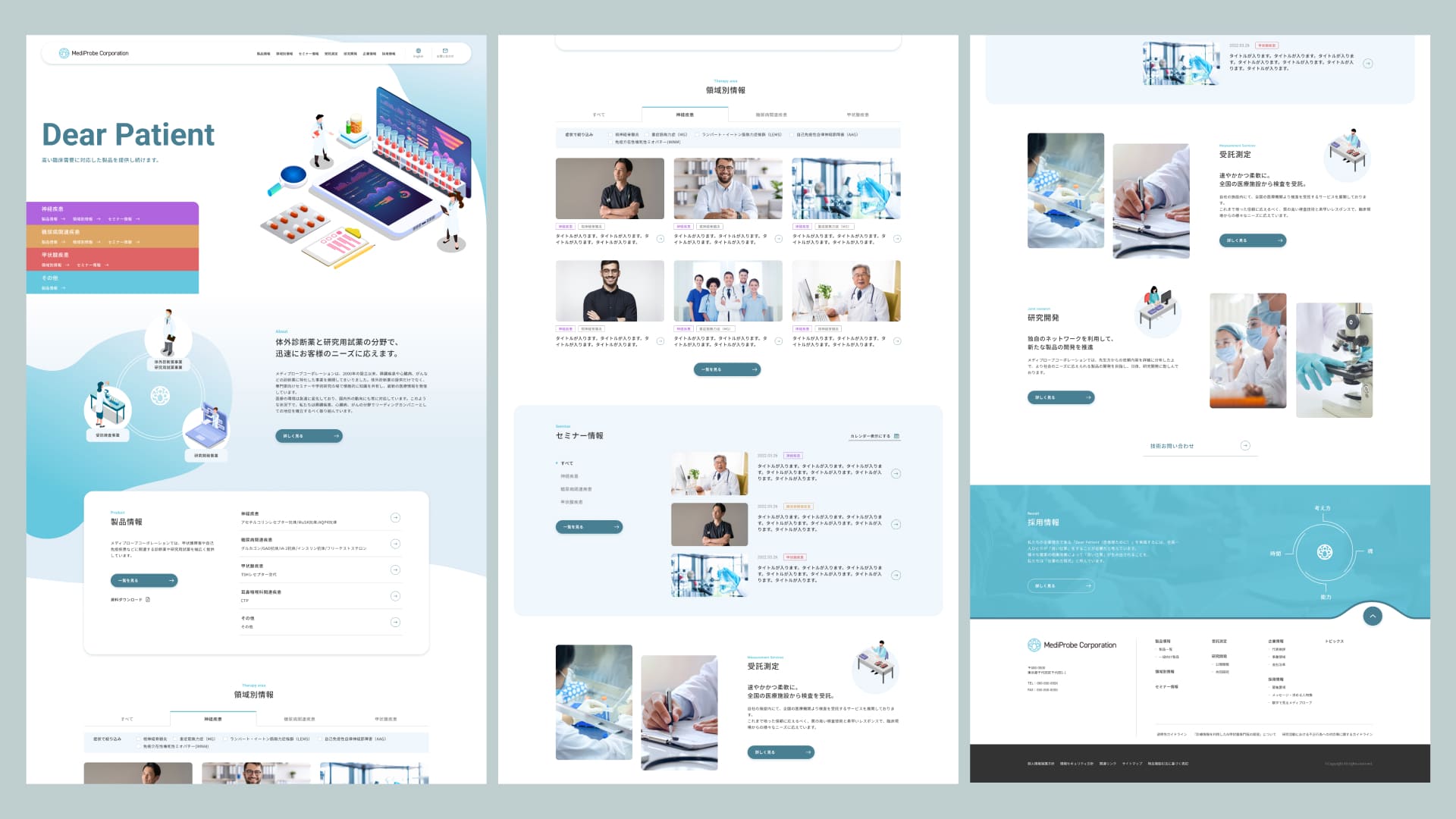 医療従事者に向けた疾患の判別に関する情報発信サイトとコーポレートの2面性をもつサイトとして設定し、そちらの提案としてWebサイトのアートディレクションとデザインを行いました。