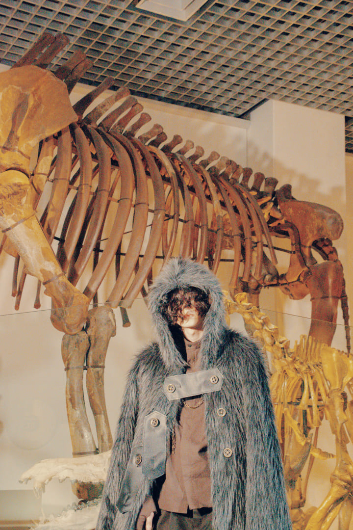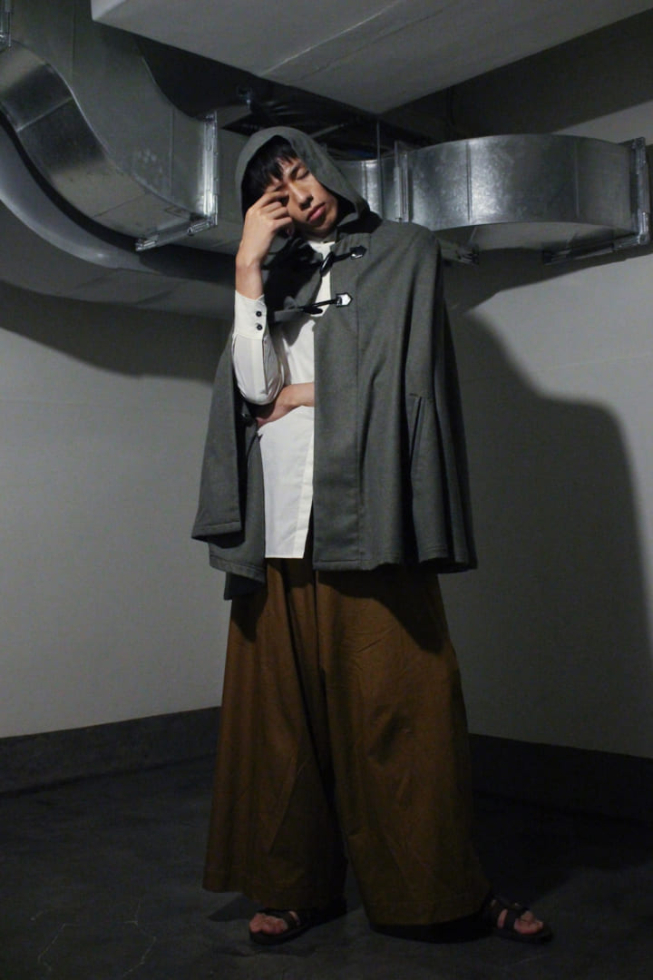 自ら考えた世界観にあったデザインを作り、自分でパターンを引いて布の選定から裁断や縫製まで手作業で行いました。