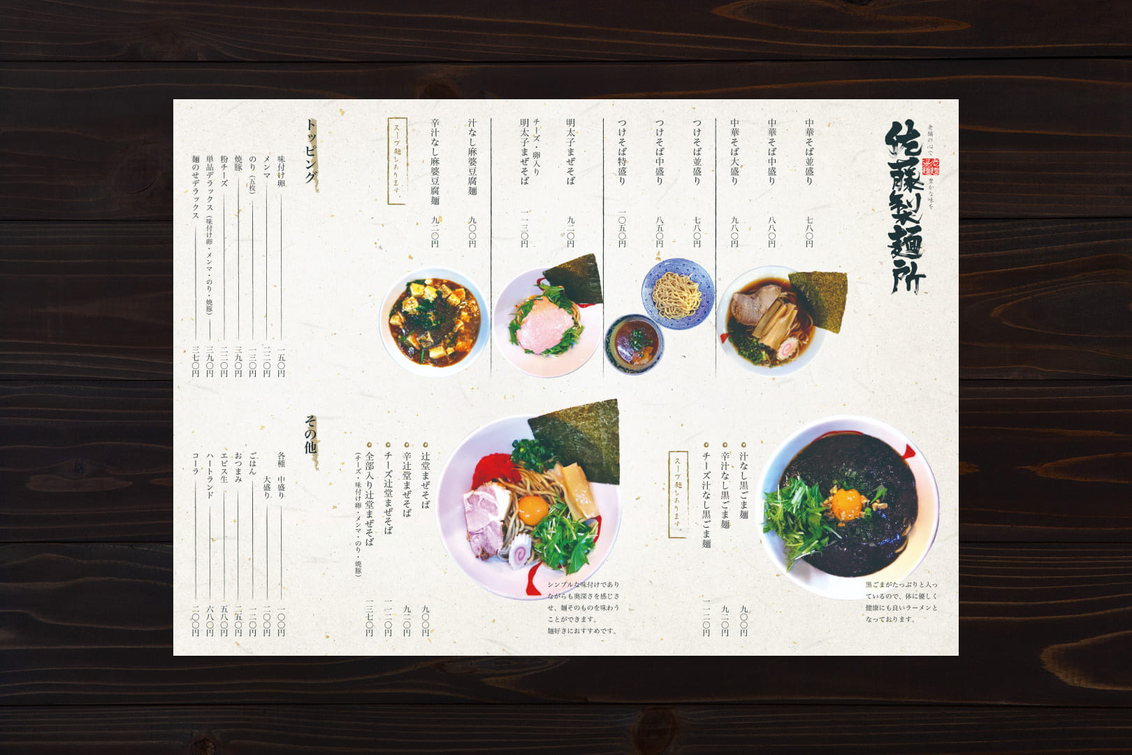 実家のラーメン屋である「佐藤製麺所」のメニューのデザインです。